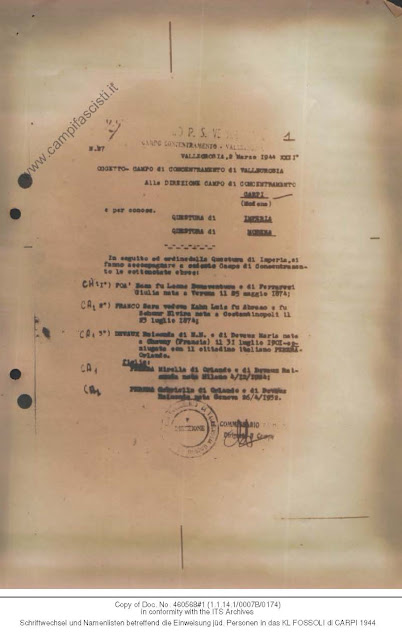 A quella data, però, i circa 40 ebrei lì internati erano già stati trasferiti al carcere genovese di Marassi a inizio febbraio 1944 e consegnati alle autorità germaniche.